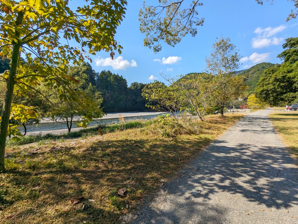 目の前は視界が開けていて、川と山のコントラストがとっても素敵なロケーション。