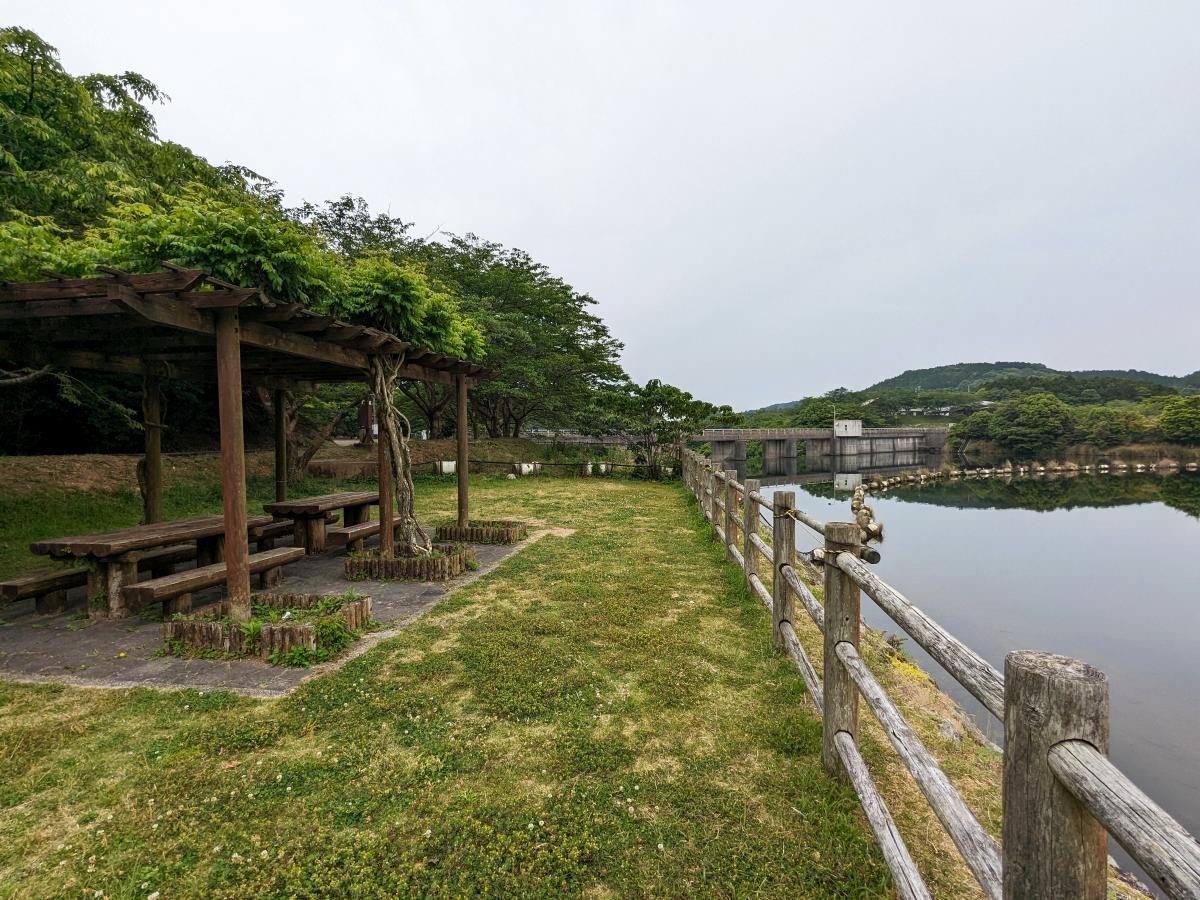 伊佐ノ浦ダムの湖畔に位置するキャンプ場。