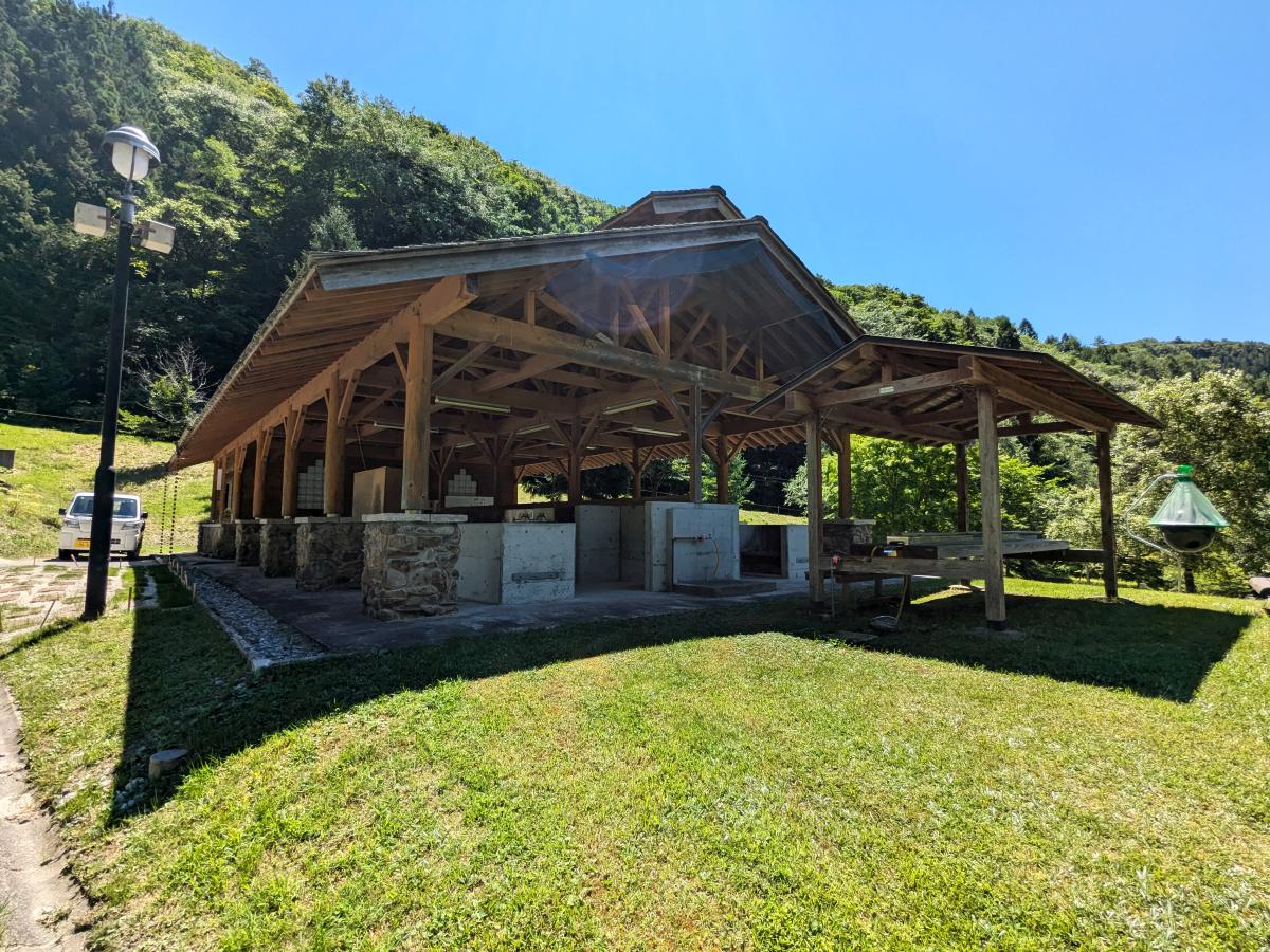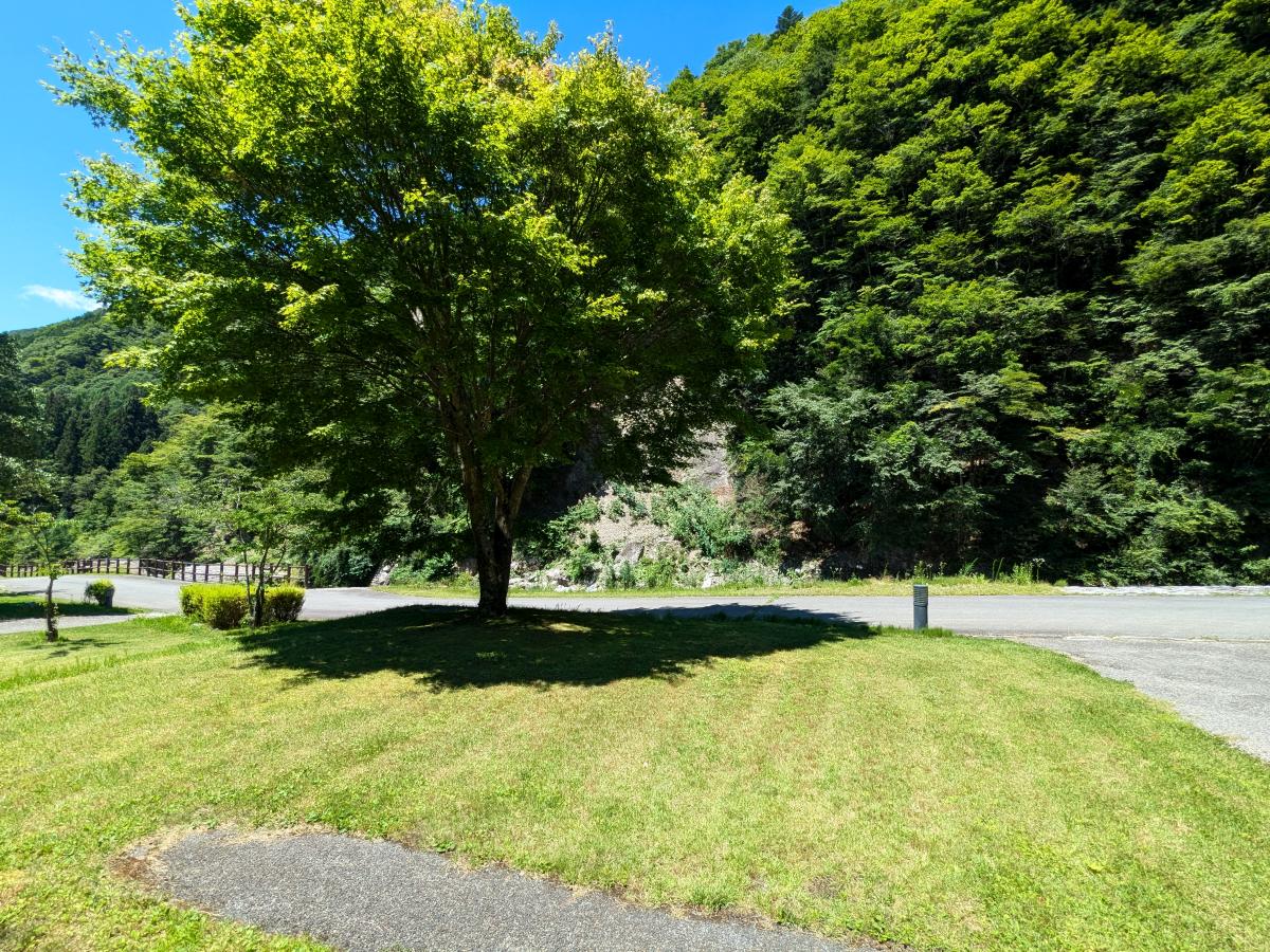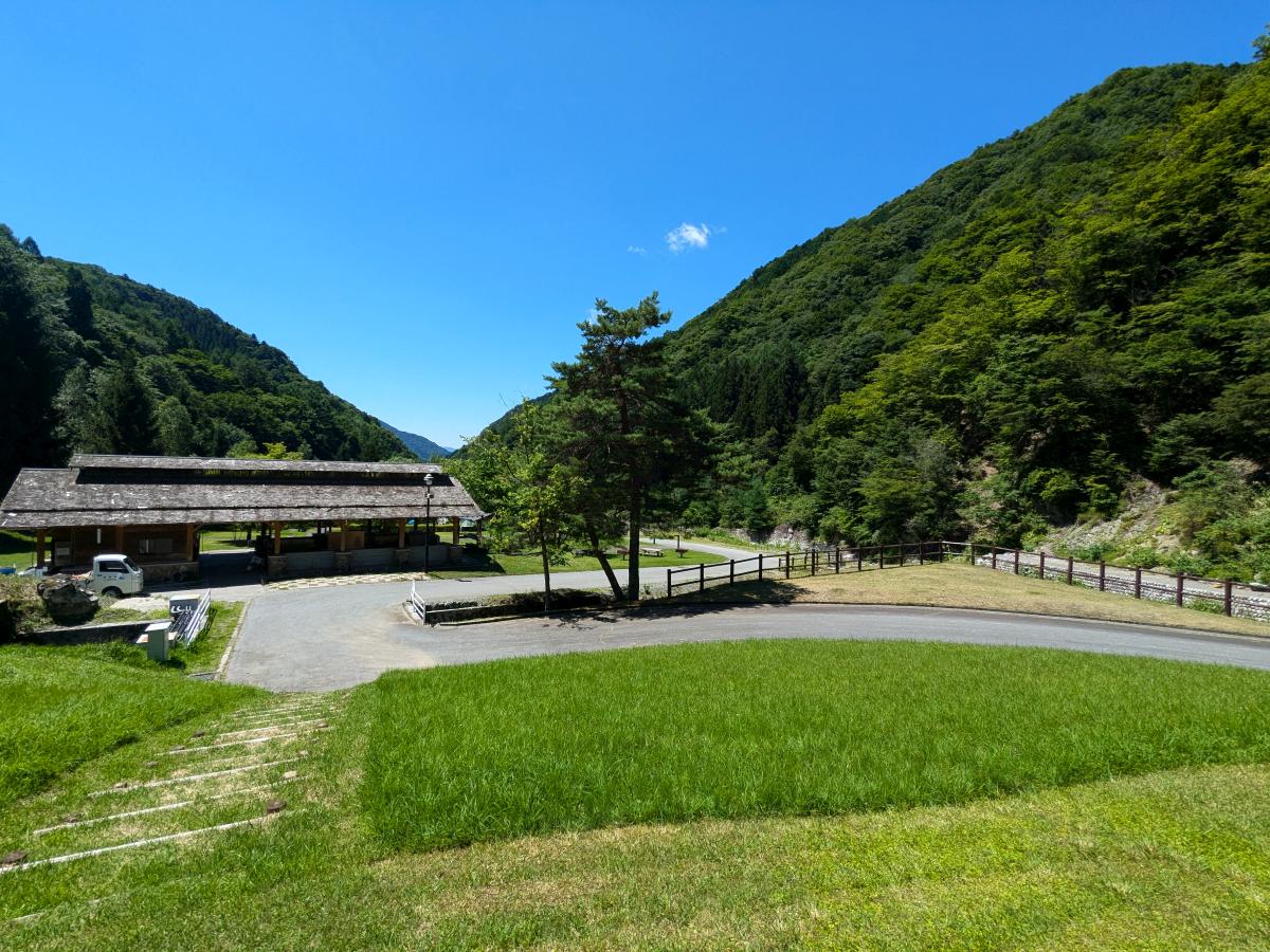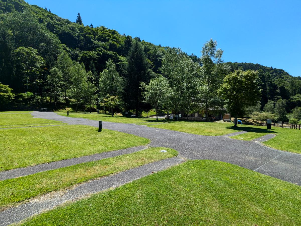 山あいにある、見るからに綺麗に手入れされたキャンプ場。