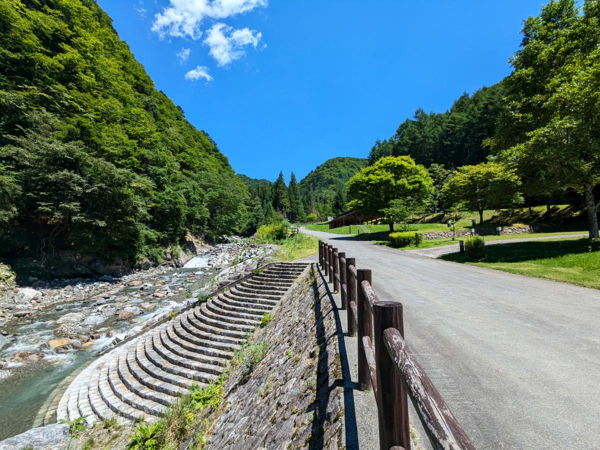 サイトからは見えませんが、目の前には川遊びができる綺麗な川もあり。